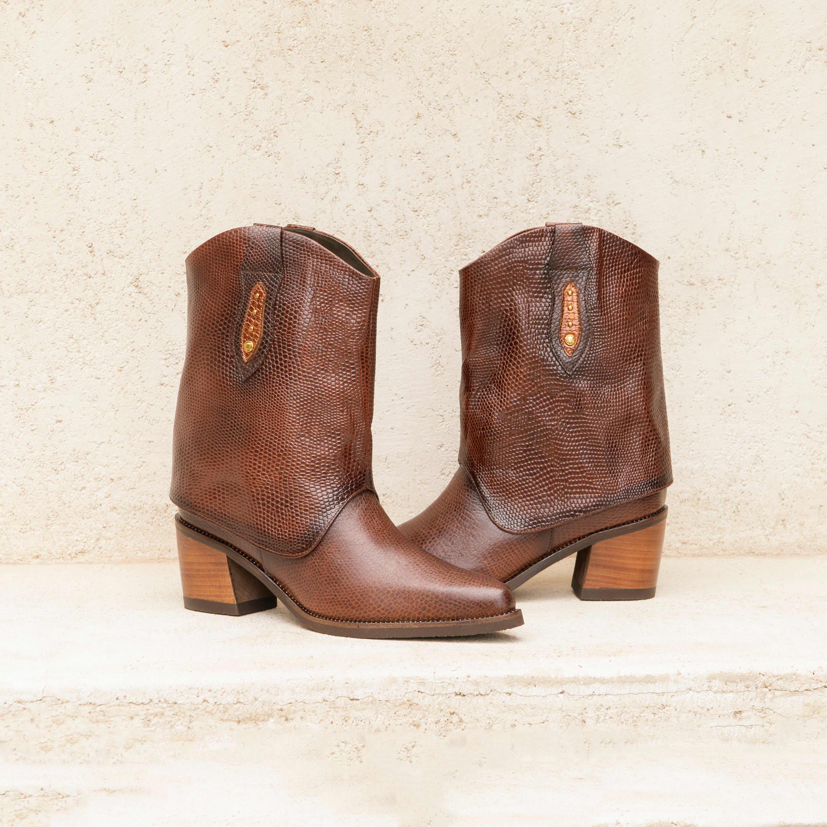 Botines en cuero color arena con textura croco 104642 - ARENA / 38