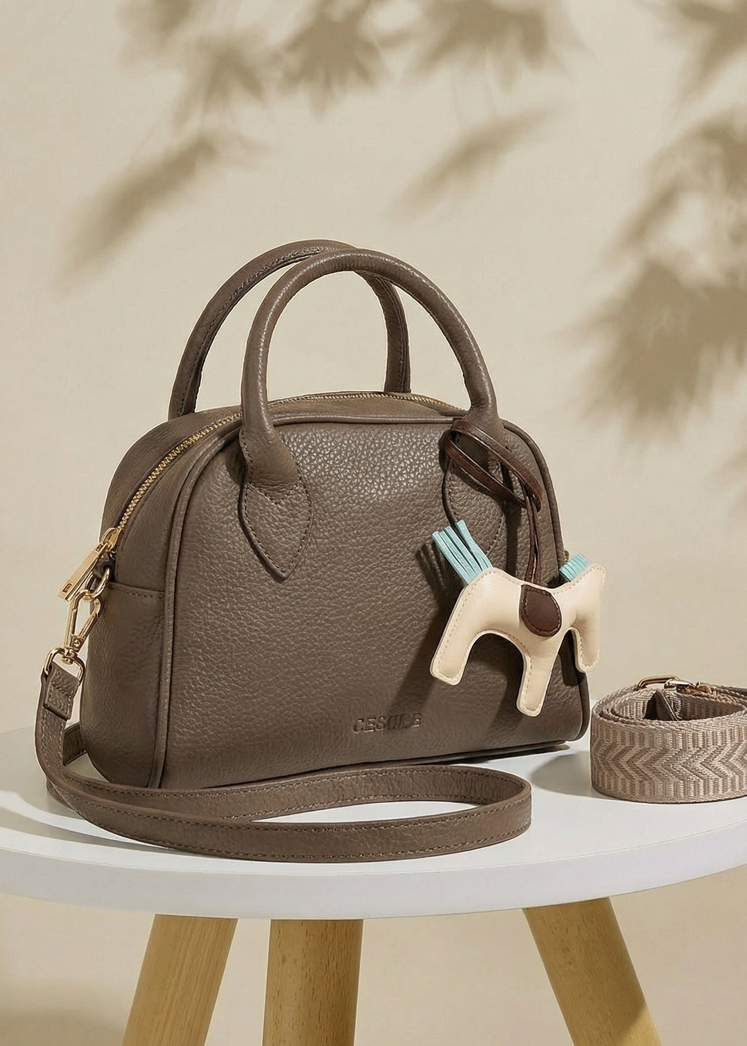 Bolso manos libres color moca diseño tipo mini baúl 106346
