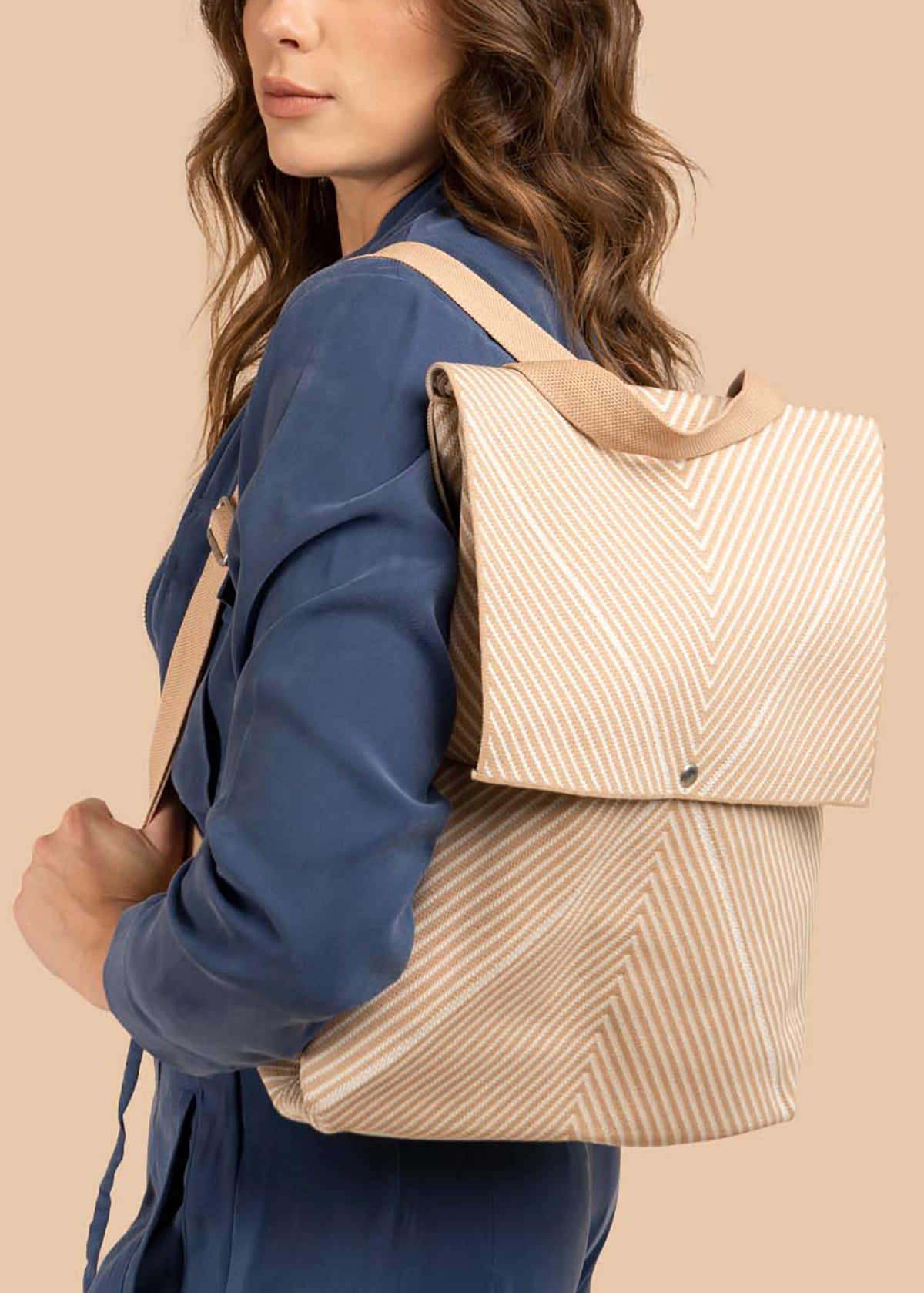 Morral color beige con bolsillo delantero y textura trenzada 106324