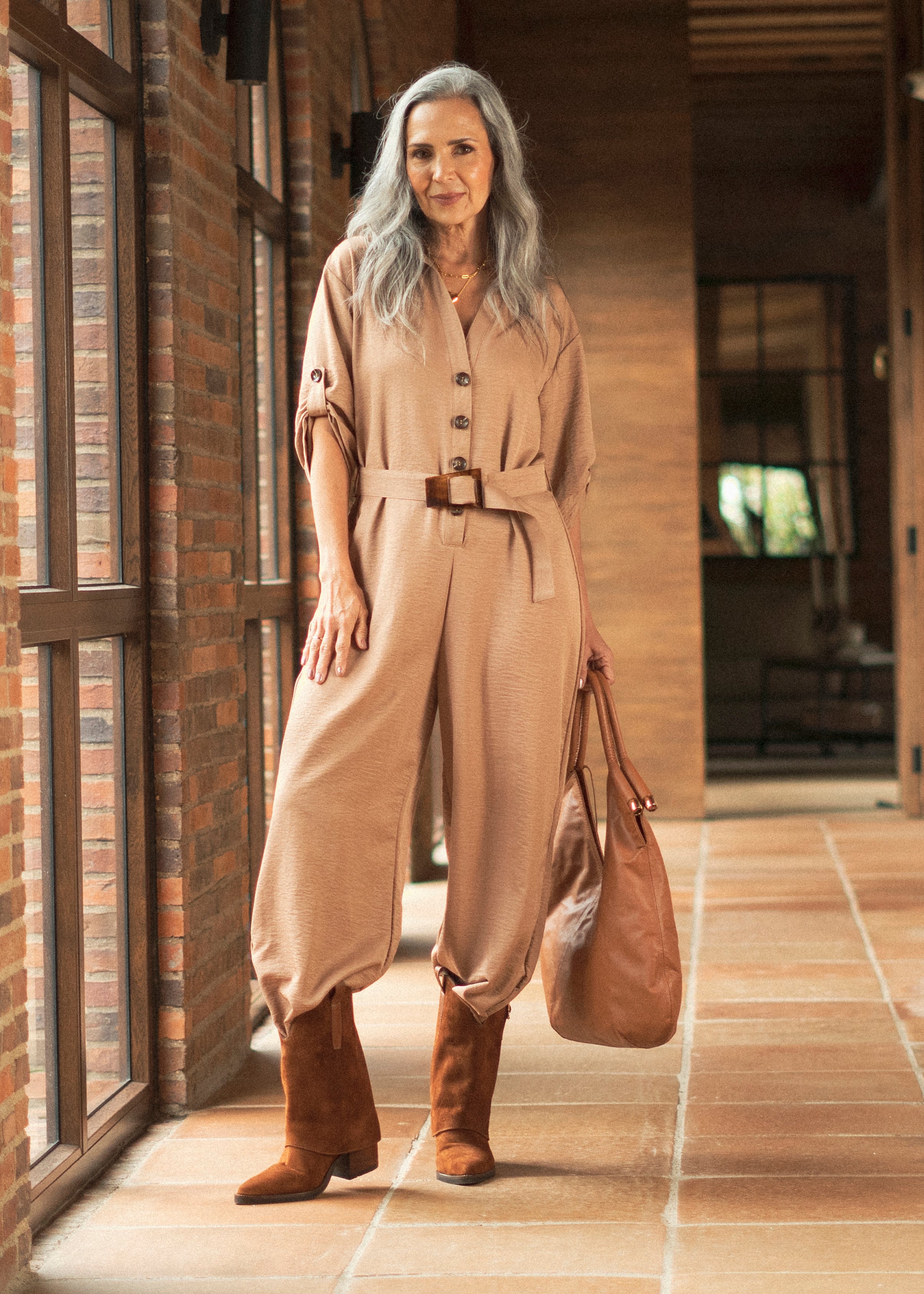 Enterizo color camel con botones frontales y cinturón ajustable 105856Enterizo color camel con botones frontales y cinturón ajustable 105856