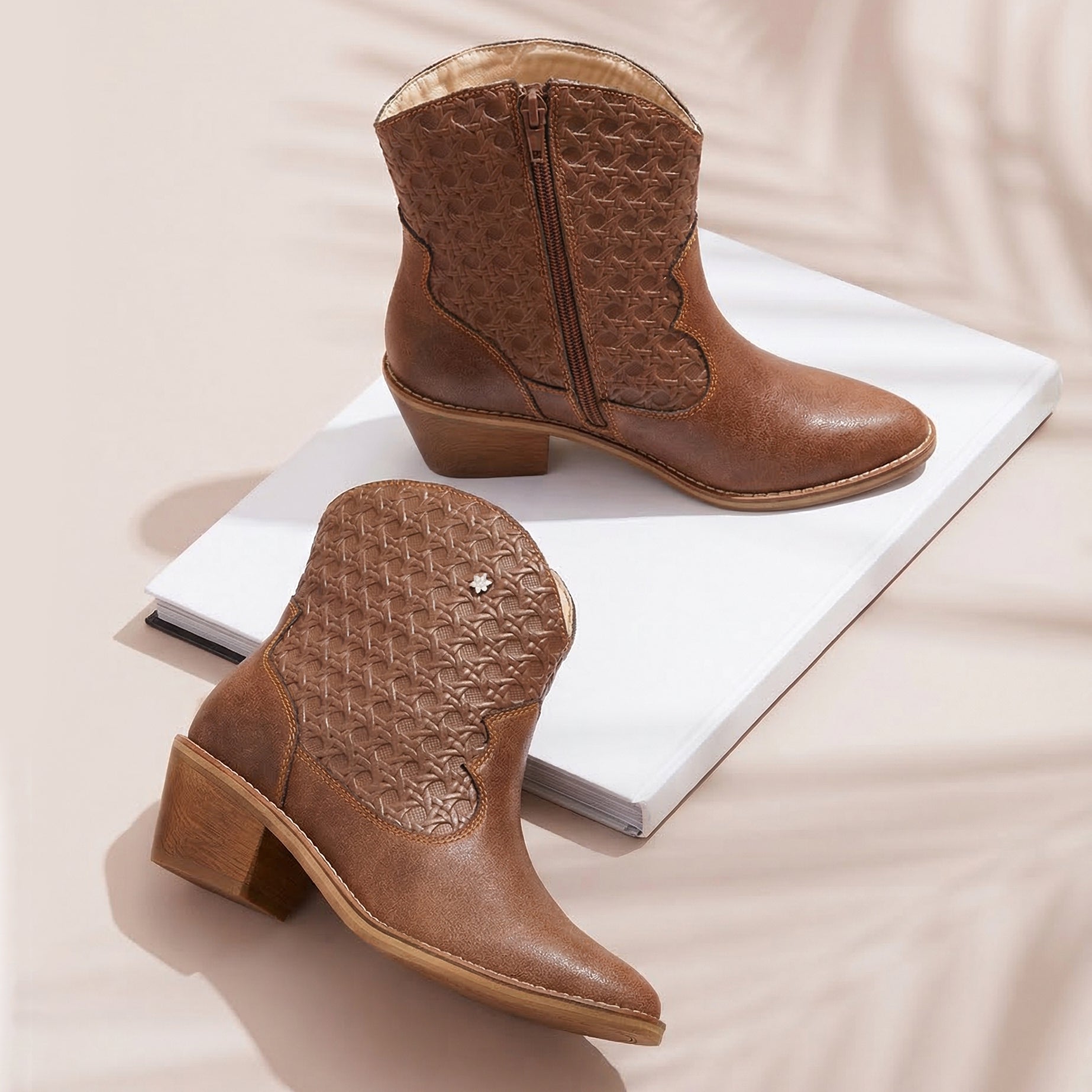 Botines en cuero color miel con textura en talón 104881 - MIEL / 36