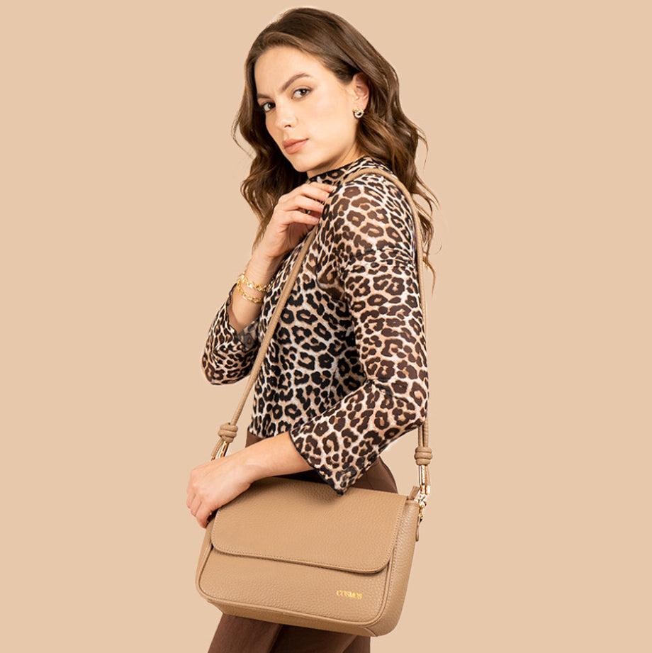 Morral en cuero color tabaco con cierre frontal 105310 - TABACO