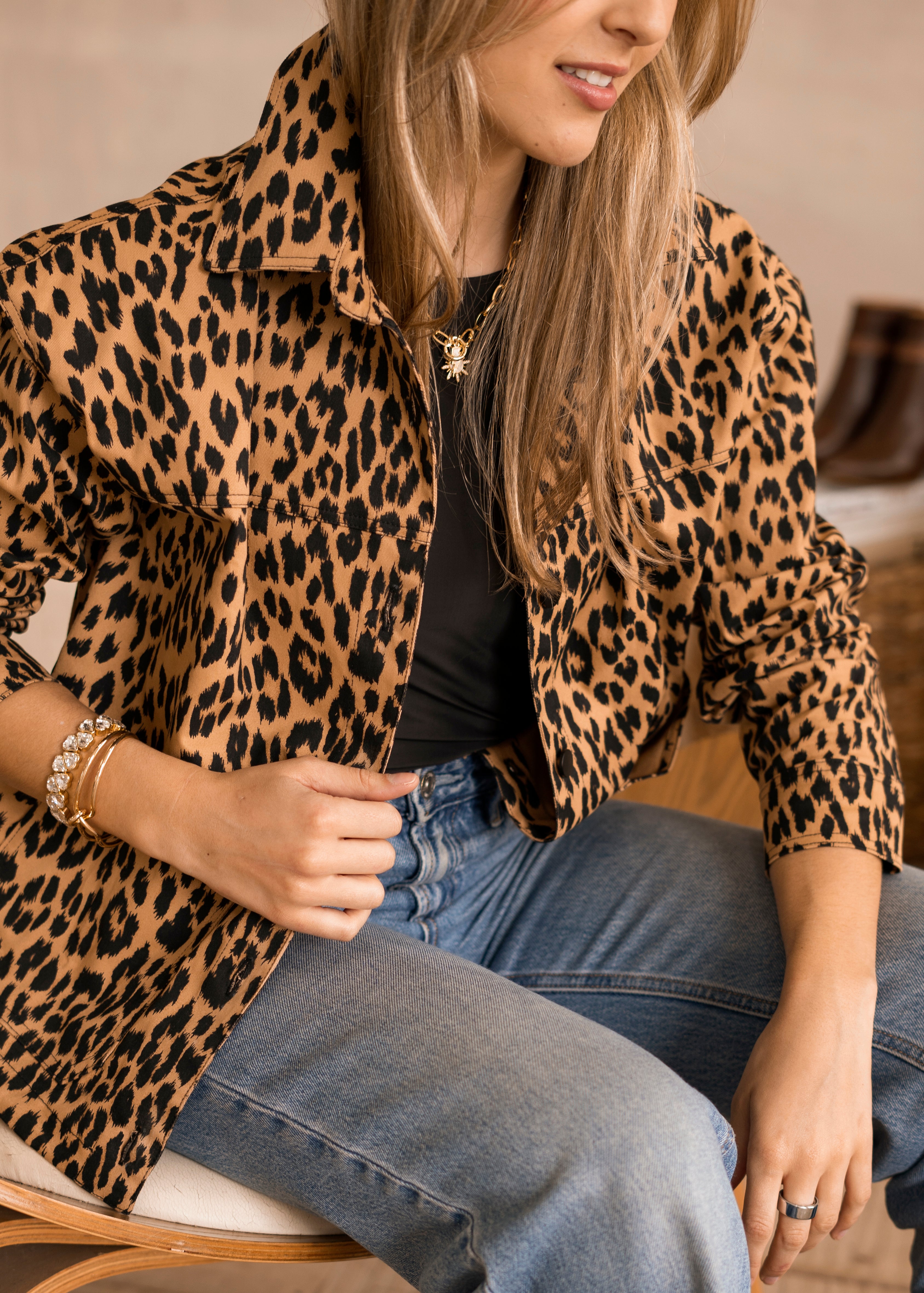 Chaqueta color animal print con cuello alto y bolsillos frontales 106577