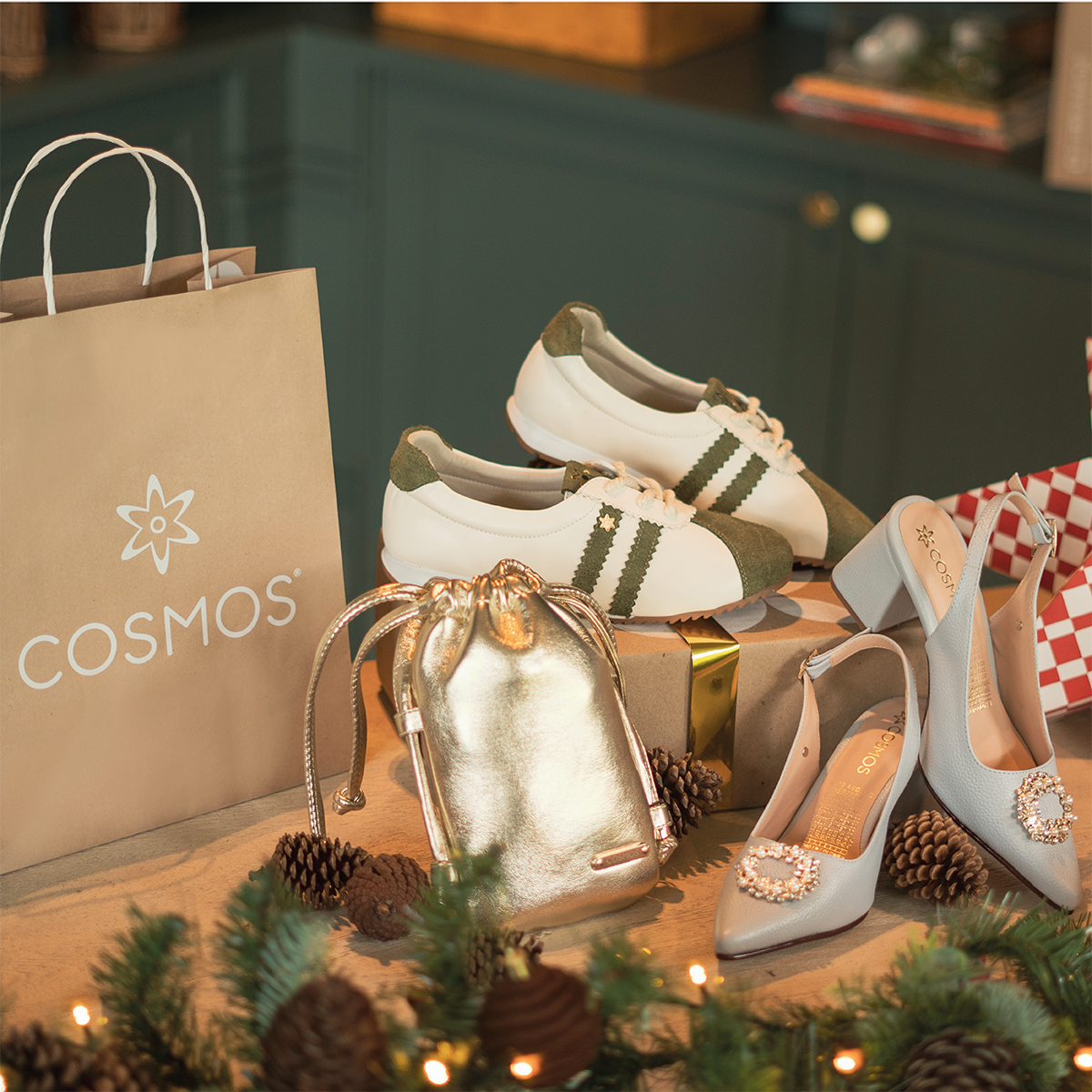 Deportivo en cuero color verde estilo clásico y doble franja lateral 106031