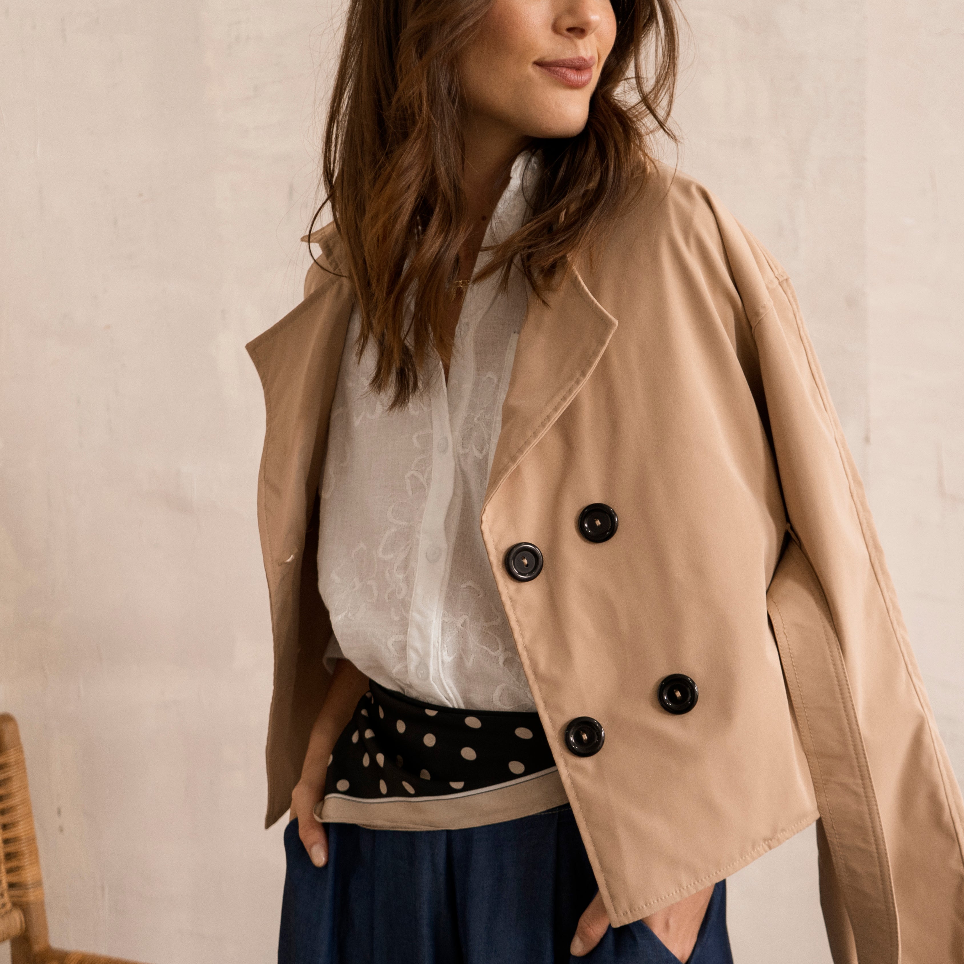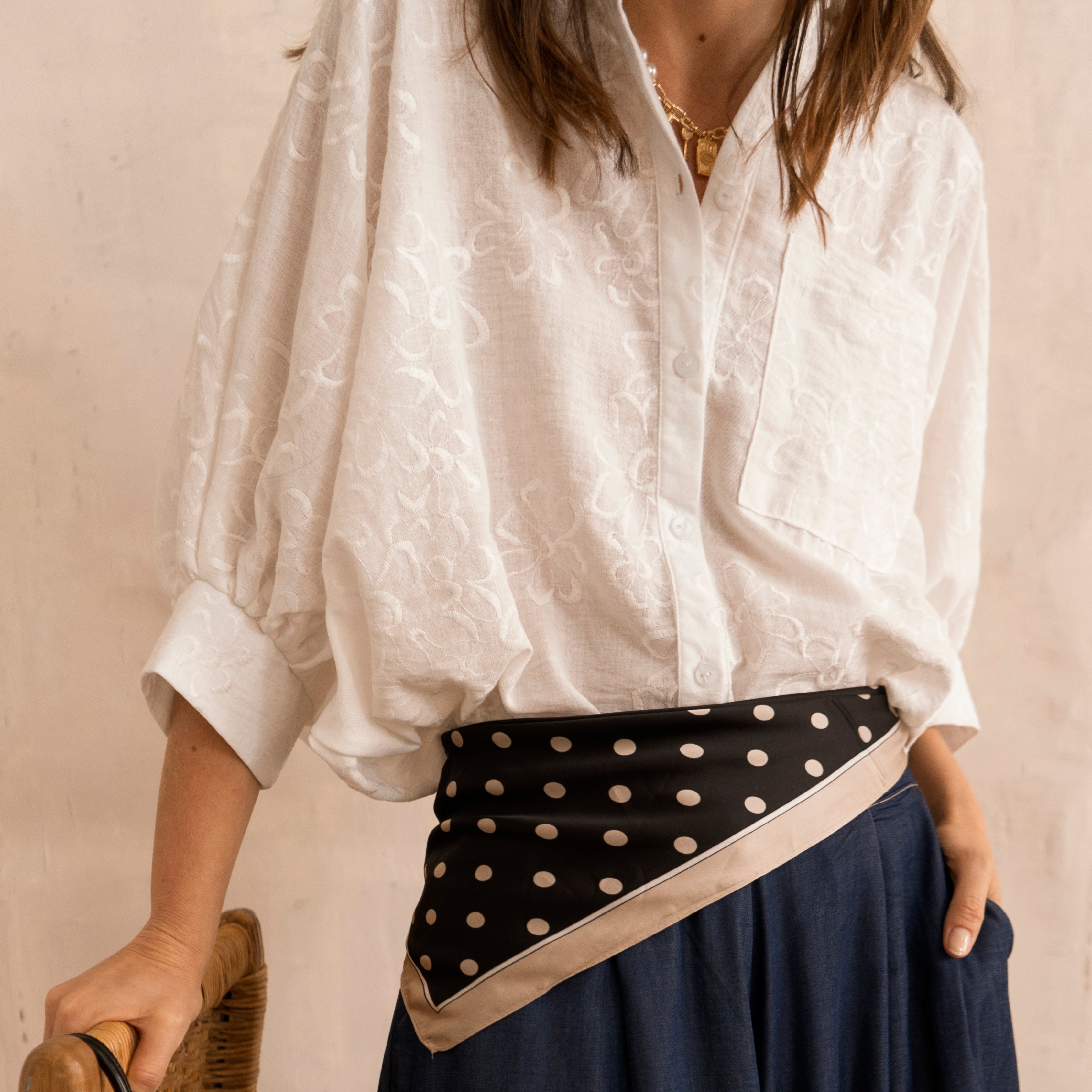 Blusa color blanco con manga 3/4 y texturizado de flores COSMOS