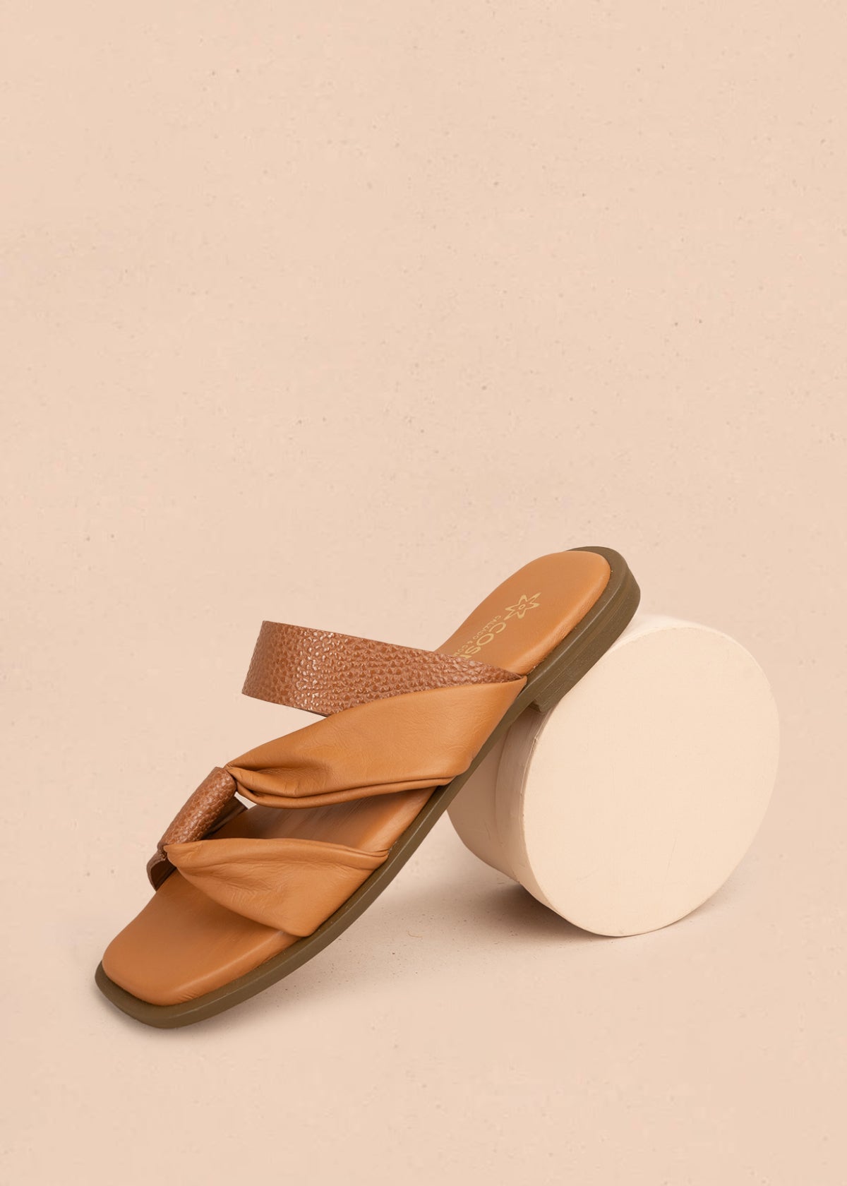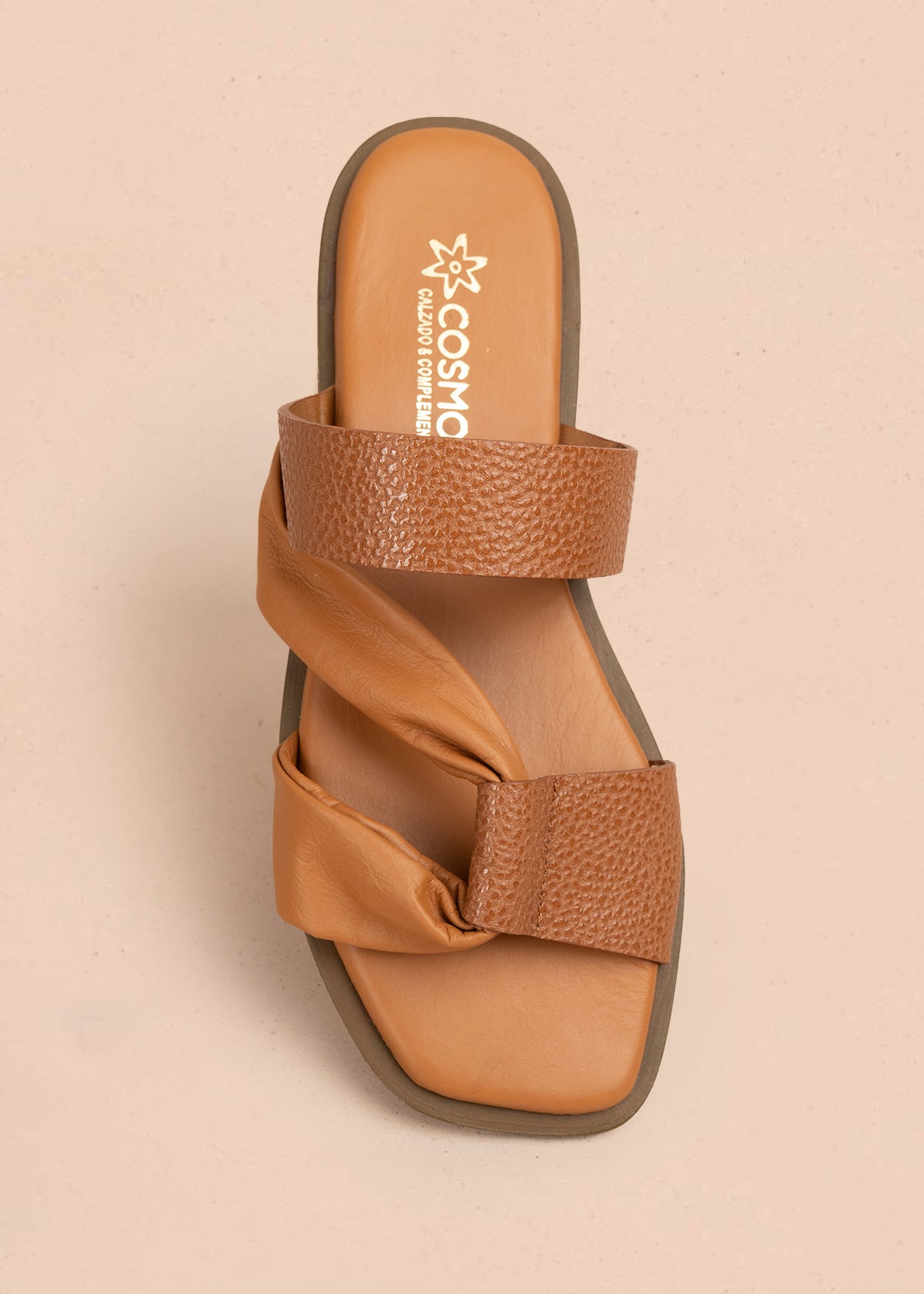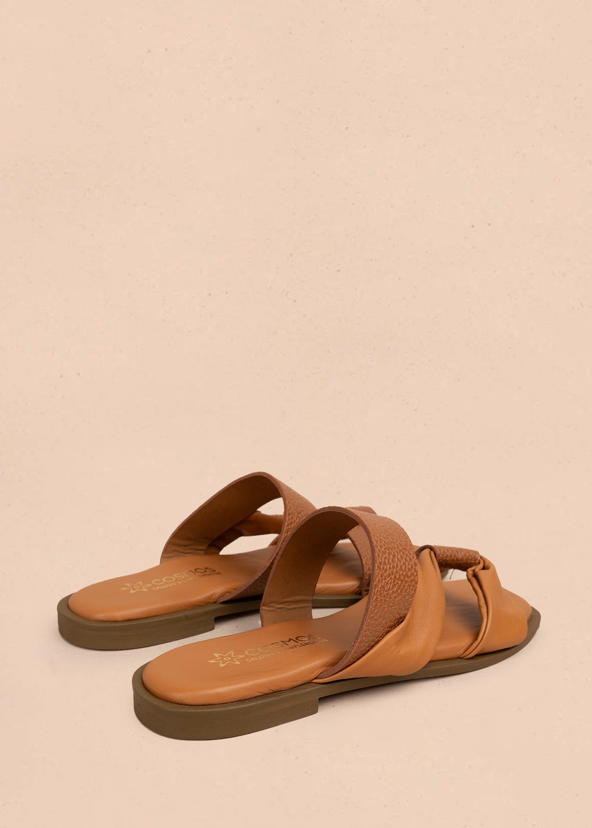 Sandalia en cuero color miel con correas cruzadas, COSMOS
